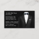 Classy business cards for a Formalwear or Tuxedo Rental service designed with a men's suit on the front and back in this double side design already organised so you just replace our text with yours.
