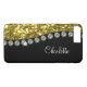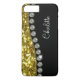 Classy glitzy cellphone case for iPhone created with monogram space you can personalise with your own name or monogram initials decorated with simulated rhinestone jewels and gold glitter as background art that adds a touch of glitz and glam to your device.