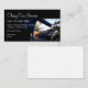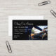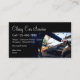 Classy car service for hire business cards designed for a fleet taxi service, independant care hire service, or Uber driver. Designed with a classy car in the background and driver opening the door for a client. Presented on glossy business card stock.