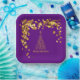 This paper plate features a gold abstract Christmas tree and golden stars on a purple background. You can customise this item by adding a name, monogram or other custom text.