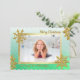 Classy Gold and Sage Green Custom Photo Christmas Personalised Holiday Card.
