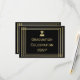 Stylish and classy masculine Graduation party RSVP cards for men and boys. With a pretty gold border of symmetrical lines on a black textured effect background with a printed image of a graduate...The reverse of this card has your event details with the added image of a Grads cap in the top left corner. All text is fully customisable to meet your requirements. If you would like help to customise or would like matching products please contact me through my store and i will be very happy to help you.
