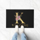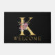 Classy Gold Monogram K with Pink Florals Doormat