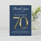 Classy Gold Navy Blue 70th Birthday Thank You Card