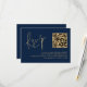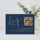 Classy Gold Script Navy Blue QR Code Wedding RSVP Card