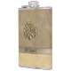 Classy golden Irish lucky shamrock leather look Hip Flask