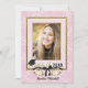 A touch of class, with this Class of 2018 invitation featuring black ribbon and flower accents for the Graduate. Design has gold and black text with tassel and Mortar accent.