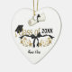 Class of for any year design featuring black ribbon and flower accents for the Classy Graduate. Design has gold and black text and white flowers with Mortar and diploma. Customise Name and year area.