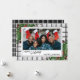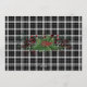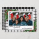 Unique, classic, trendy, pretty and decorative Holiday card. Cute Happy Holidays greeting text and room to customise or personalise with a photo, family name (or individual names) and message of your choice. Framed by Burgundy wine red berries and dark green foliage wreath bouquets on a classy black and white French country cottage gingham check background.