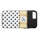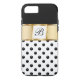 Classy monogram smartphone case with simulated gold design elements printed on the cover, and black and white polka dots. Carry your cell phone in style in a design created for men, women or business professionals that want a low key appearance.