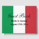 Classy Italian flag guest book for wedding party. Green white and red flag of Italy design with elegant script text. Perfect for letting guests write some words. Personalise with name of bride and groom. Also useful for other occasions.