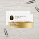 Classy Doctor office business cards includes a gold coloured medical caduceus symbol that has a metallic look and gold coloured background element. Designed for an health insurance agent, medical Physician, Nurse Practitioner, or health clinic.