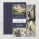 For a simple classy look choose this color block style dark blue and white modern, front four photo graduation announcement design by Holiday Hearts Designs. Simply switch out the photos for your graduate's and add his or her details (name, school, year, and graduation date). Back features a solid dark blue background.