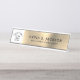 Custom add your own Company Logo Luxury Executive Gold Foil Metallic Stainless Steel Minimalist Business Name Plate with white lettered typography for the monogrammed add your own name and job title or position. The Metal Business Professional Name Plate can be customised with your name. Please contact the designer for customised matching items.