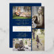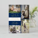 For a simple classy look choose this colour block style blue and white modern, front four photo graduation announcement design featuring real gold foil accents by Holiday Hearts Designs. Simply switch out the photos for your graduate's and add his or her details (name, school, year, and graduation date). Back features a solid black background.