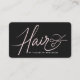 This business card features the word "Hair" in an elegant script font with a pair of scissors in blush pinkagainst a black background. Perfect for hairstylists or salons. You can change the text or background to whatever colour you wish.