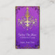 Modern Sophisticated Designer Salon Business Cards featuring a sparkly chandelier in purple tones and surrounded by silver metal flourishes and black embellishments and ribbonlike art. The background of this card is a beautiful pearl like texture. Stand out from the crowd & make a statement with these cards. Customise with your personal information and show off your classy, modern side for any business!. Created and Copyright 2012 Julie Farrell More funky, cute & cool apparel and gifts available at www.zazzle.com/oddlotpaperie Happy Shopping. © 2012 | Julie Farrell | All Rights Reserved