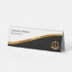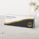 Classy monogrammed Attorney office desk name plaque designed with a gold and black coloured modern design element and gold coloured scale of justice symbol. Presents you and your office staff in a professional style in a budget friendly design available in bulk or one off printing.