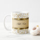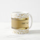 Monogram coffee mugs design created with gold and white elegant design elements and space you can personalise with any name or initials. Designed for men or women, this modern design makes this an uoscale cup for coffee, tea, for the office or home.
