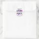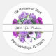 Classy monogram floral family return address label stickers in a round style with text that follows the curve shape of the sticker and is decorated with beautiful purple flowers in the background. Perfect for envelope seals, return address labels or moving announcements.