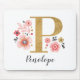 A beautiful, feminine monogrammed pink floral mouse pad, featuring pink flowers and a faux gold monogram letter P. Personalise the mouse pad by adding your name underneath the monogram. Makes a fun gift for a friend or for a bridesmaid gift. Designed for you by Blackberry Boulevard.