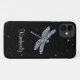 Ladies or girls classy bling monogram smartphone case for iPhone with glitzy rhinestone dragonfly and monogram space with name drop you can replace with your own name or monogram initials you can personalize online.