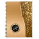 Stylish and classy notebook with simulated gold snd glitter digital background. Inckudes a monogram emblem you can personalise with your monogram initial and is deeigned for keeping notes, writing in recipes, or keeping lists.