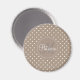 This custom magnet features a stylish monogram design in brown and white polka dots. It is perfect for adding a touch of class to your home or office. The monogram is made up of a combination of your initials, so it is unique and personal to you. The background is a pattern of light brown and white polka dots, which adds a fun and eye-catching look. The magnet is strong enough to hold up any notes or reminders you want to keep handy. With its unique design and strong hold, this monogrammed magnet makes a great gift or addition to any home or office.