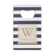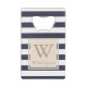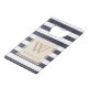 Classy nautical themed thick white stripes pattern with light peach decorative square and personalised monogram and family name.