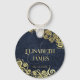 Classy Navy Blue And Gold Boho Swirls Wedding Key Ring