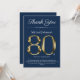 Classy Navy Blue Gold 80th Birthday Thank You Card