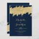 Classy navy blue gold glitter brushstrokes wedding invitation