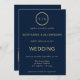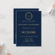Classy Navy Blue Gold Monogram QR Code Wedding Invitation