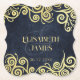 Classy Navy Blue Gold Swirls Wedding Sophisticated Paper Coaster