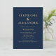 Classy Navy Blue Gold Text QR Code Wedding Invitation
