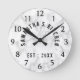 Classy Personalised White Marble Kitchen Clock to add a luxury look to your kitchen decor. Personalise with name and established year.
