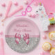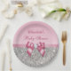 Classy Pink Bow Silver Sequins Baby Shower Paper Plate