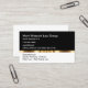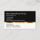 Classy Attorney business cards for a Lawyer that practices in the fields of probate law, estate planning, and elder care. Created in gold black and white with elegant gold tone design element that adds class to the design.