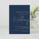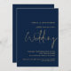 Classy QR Code Navy Gold Script Wedding Invitation