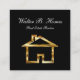 Here is a unique real estate broker business card template on square format card card stock that sets you apart. Designed with a black background and a gold looking house symbol that makes an upscale design and features your name on the front and your contact on the back.