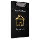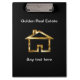 Classy custom acrylic real estate clipboard that includes a gorgeous simulated gold house symbol digitally printed on both sides, and text you can personalise, all designed for a real estate agent, Realtor, or broker.
