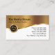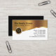 Classy real estate business card design with Elegant gold coloured design element and house symbol in an emblem that gives this business card at touch of class. Created for a realtor, broker, agent, or home inspection service and presented on rounded corner hard stock.