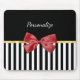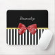 Classy Red Bow Black and White Stripes With Name Mouse Mat