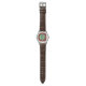 A classy round faced watch for men with a leather band. A unique red and green design with gold coloured numerals is the focal point. Great special occasions gift for your partner.