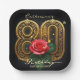 Celebrate an 80th birthday with this elegant customisable paper plate. The design features a magnificent gilded "80" with intricate baroque-style filigree, complemented by a vibrant red rose at its centre. Golden sparkles dust the black background, adding a touch of festive luxury. Customise it with the name and date to create a memorable detail for a milestone celebration.