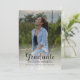 Classy script text "Graduate" two photo graduation announcement design featuring a large 5" x 7" photo on front with a smaller square photo on the back top and your graduation details below. The front template is set up for your graduating senior's name, class year and school on bottom underneath the script "Graduate". A white semi-opaque background overlays the photo to make the text at the bottom pop. Available with assorted background colours or the design can be edited to change the back background colour and text colours as desired. "Graduate" text style can only be edited by designer, but the colour is editable. Composite design by Holiday Hearts Designs (rights reserved) with template placeholder photos provided via Unsplash.