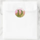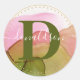 Classy Script Name & Intial | Pink & Green Classic Round Sticker