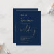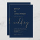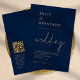 Classy Script QR Code Navy Gold Wedding Invitation
