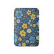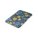 This beautifully arranged bath mat showcases a classic French Mediterranean botanical flower design, featuring a vibrant pattern of yellow, white, and medium blue flowers and leaves on a dark blue background. It is available on a variety of modern decor products such as fleece blankets, lamps, and bedding.