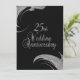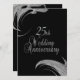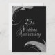 Unique black wedding anniversary invitations for a 25th wedding reception / party. Black front and back with silver text on back giving a classy look to this complimentary anniversary invite.